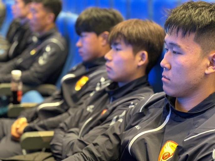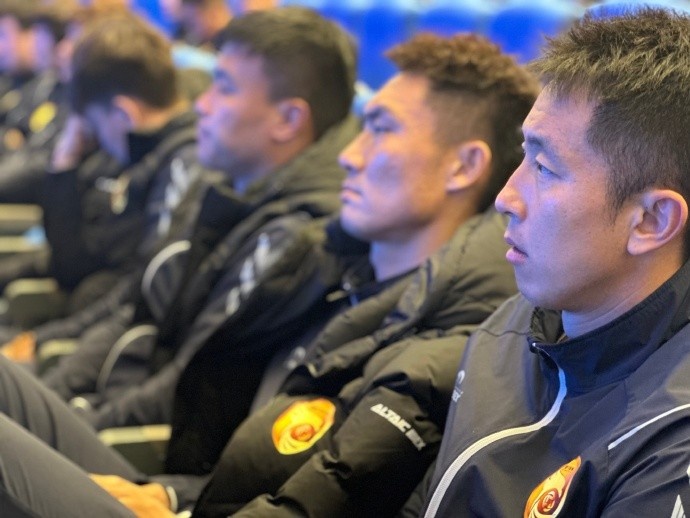 最后,現役中甲聯賽裁判監督尹航進行了職業聯賽判罰統一尺度宣講。他的宣講以文字結合過往實戰視頻案例的形式展現,給隊員們留下了深刻印象。