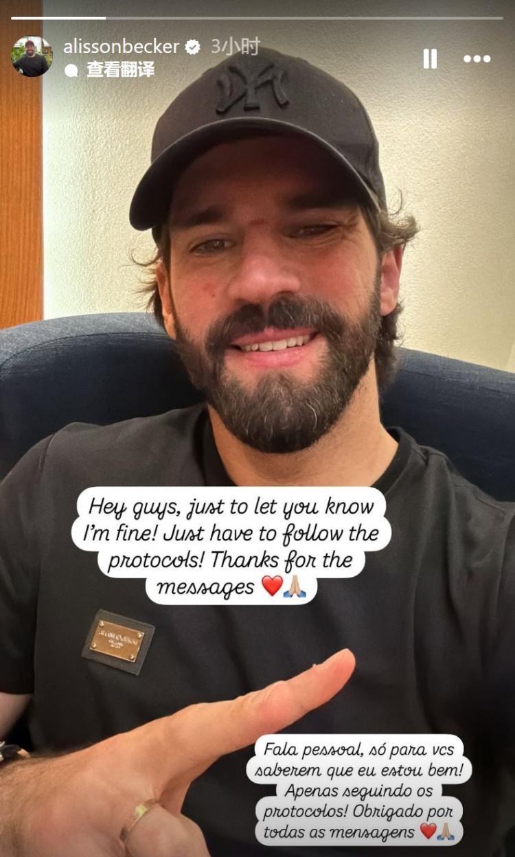 3月22日訊 世預賽南美區第13輪,巴西2-1擊敗哥倫比亞。阿利森在和桑切斯相撞后被換下,并退出了本期國家隊。隨后,阿利森更新社媒,向球迷們報平安。