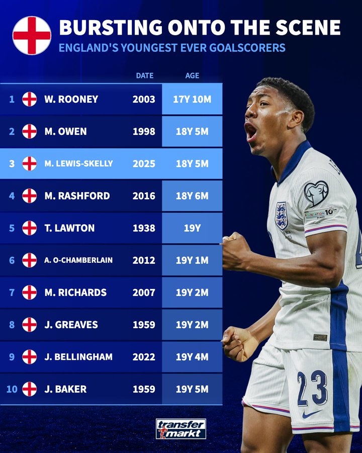 3月22日訊 今天凌晨,英格蘭2-0擊敗阿爾巴尼亞,斯凱利首秀破門(mén),德國(guó)轉(zhuǎn)會(huì)市場(chǎng)統(tǒng)計(jì),斯凱利是英格蘭隊(duì)史第三年輕的進(jìn)球者。