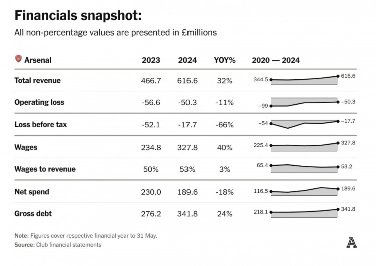 也正因為如此,在阿森納已經(jīng)連續(xù)六年出現(xiàn)虧損的情況下,PSR已然成為槍手所有者和球迷共同關心的話題。但說實話,大家也不需要過多擔心——盡管他們不能像其他球隊那樣申報高額虧損。