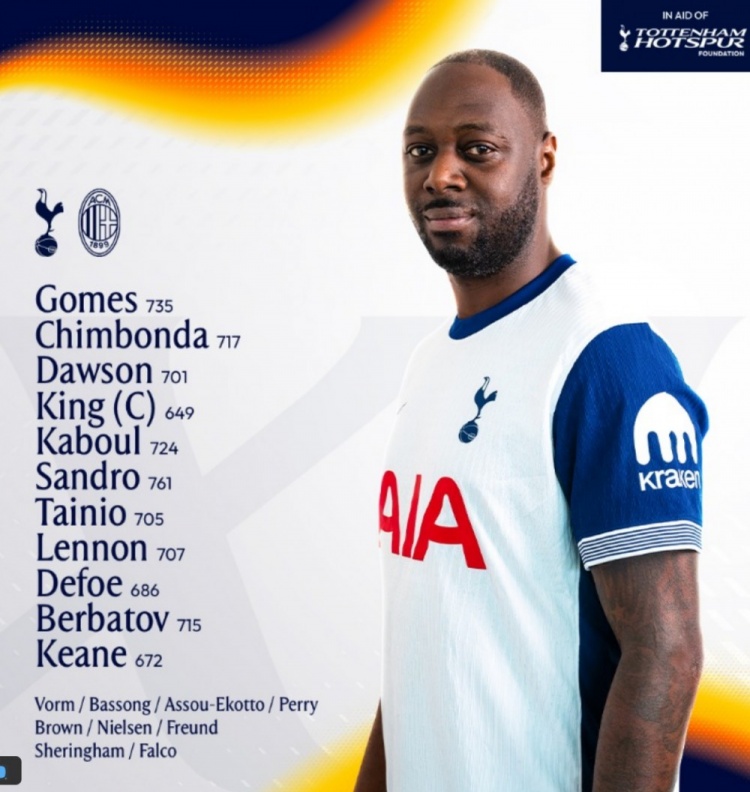 熱刺vs米蘭傳奇賽首發:皮爾洛領銜,貝巴、卡福、安布羅西尼先發?