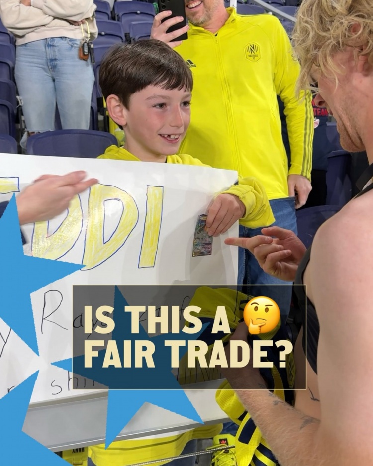 3月26日訊 美職聯球隊納什維爾SC的官方Instagram最近發文,表示一位小球迷用寶可夢卡牌換到了球員的球衣。