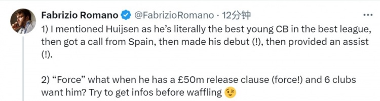 “第二,當(dāng)他的解約金為5000萬(wàn)英鎊,而6家俱樂部想要他的時(shí)候,‘強(qiáng)行推動(dòng)’什么?在胡言亂語(yǔ)之前先試著了解信息吧。”