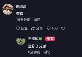 王鈺棟社媒慶祝中超生涯首球,蒯紀(jì)聞留言:夠快