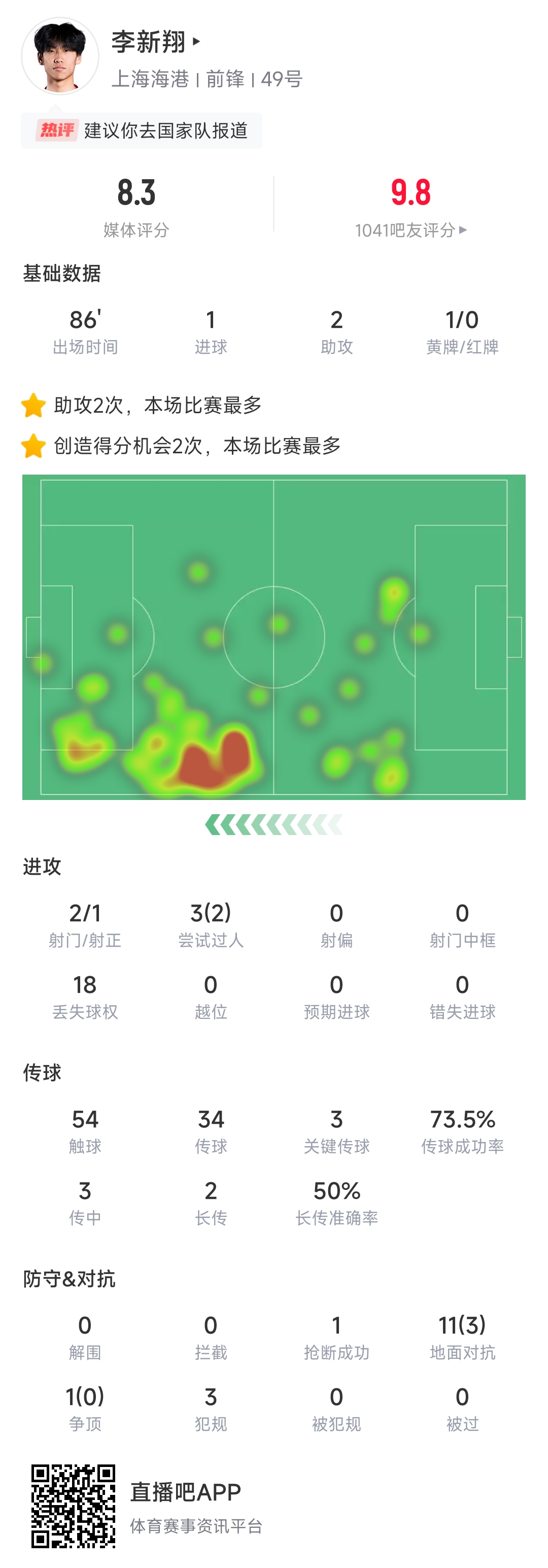 一戰成名!19歲李新翔中超首秀1射2傳,無解個人秀單挑防線處子球