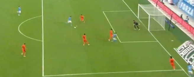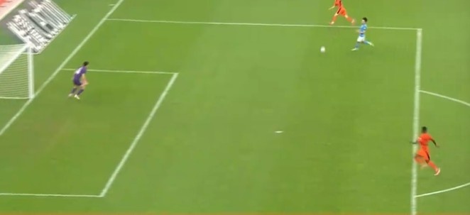 第25分鐘,列昂索前場(chǎng)接直塞球過(guò)掉馬鎮(zhèn)后推射被門(mén)線解圍。↓