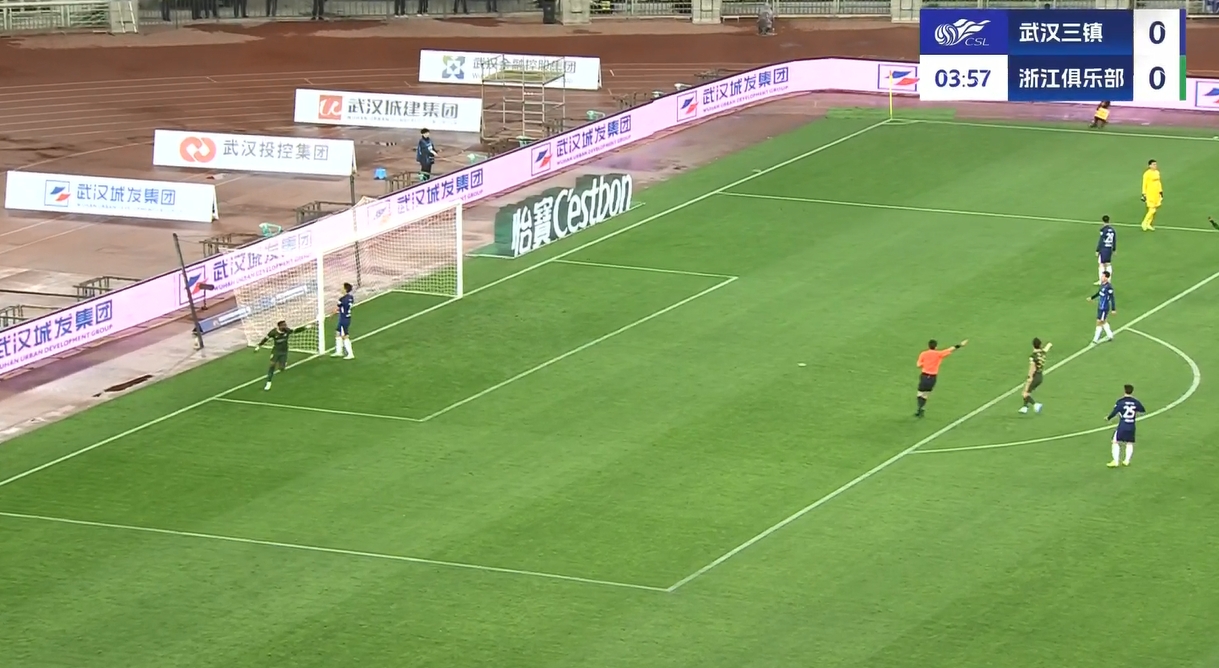 上半場(chǎng)補(bǔ)時(shí)9分鐘。半場(chǎng)戰(zhàn)罷,武漢三鎮(zhèn)0-4浙江隊(duì)。