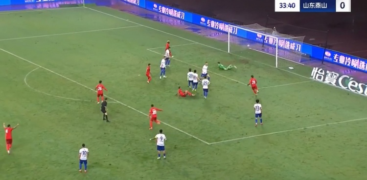 第25分鐘,山東泰山的球網出現問題,比賽因此暫停一小會。↓
