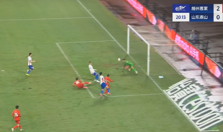 泰山20分鐘0-2落后梅州!楊超聲倒鉤破門(mén)&2場(chǎng)3球狂奔半場(chǎng)滑跪慶祝
