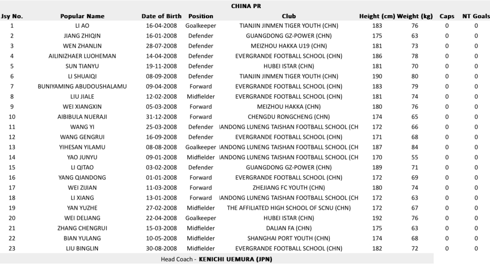 距離沙特U17亞洲杯開幕僅剩5天,亞足聯官方公16支參賽球隊的23人大名單。U17國少名單表顯示,原恒大足校混血中衛張洪福落選。