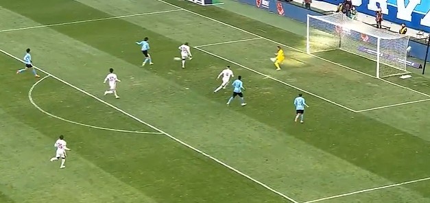 第14分鐘,亞泰左路玄智健下底傳到禁區徐越門前頭球頂偏了。↓