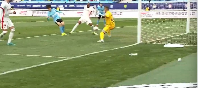 第12分鐘,大連反擊機會,馬萊萊前場橫傳禁區左路朱鵬宇推射被防守球員擋出。↓