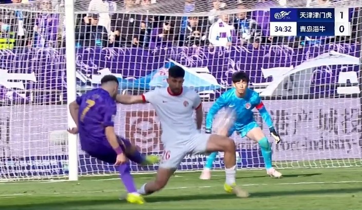 半場-羅斯進球金洋洋飛鏟染紅 天津津門虎1-0領先十人青島海牛