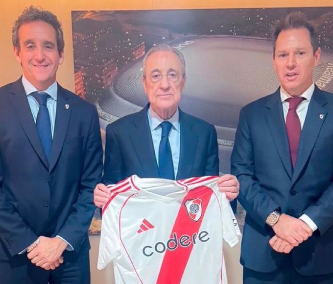 河床主席布里托造訪伯納烏觀看比賽,與弗洛倫蒂諾合影
