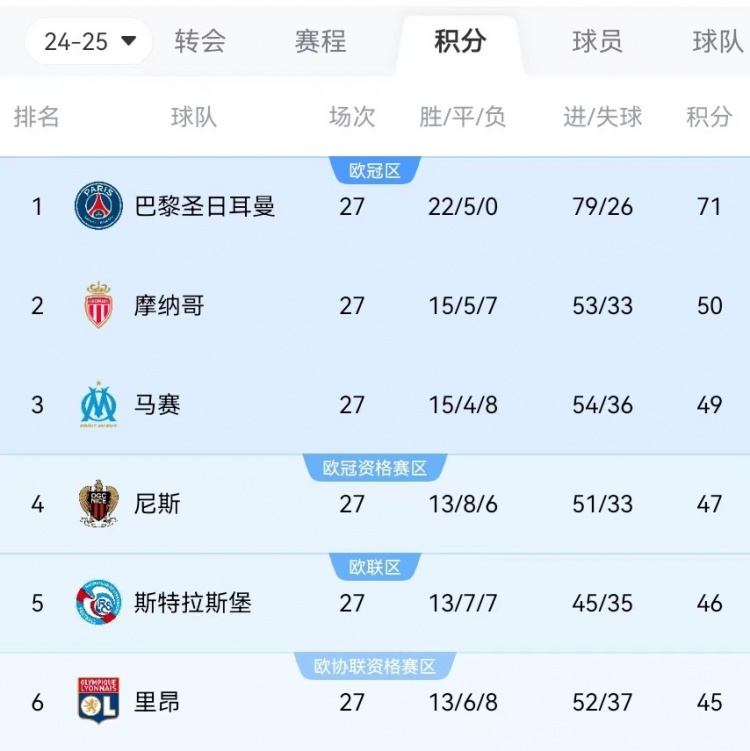 還剩7輪領先21分+33凈勝球!巴黎下輪打平昂熱,就可提前奪冠