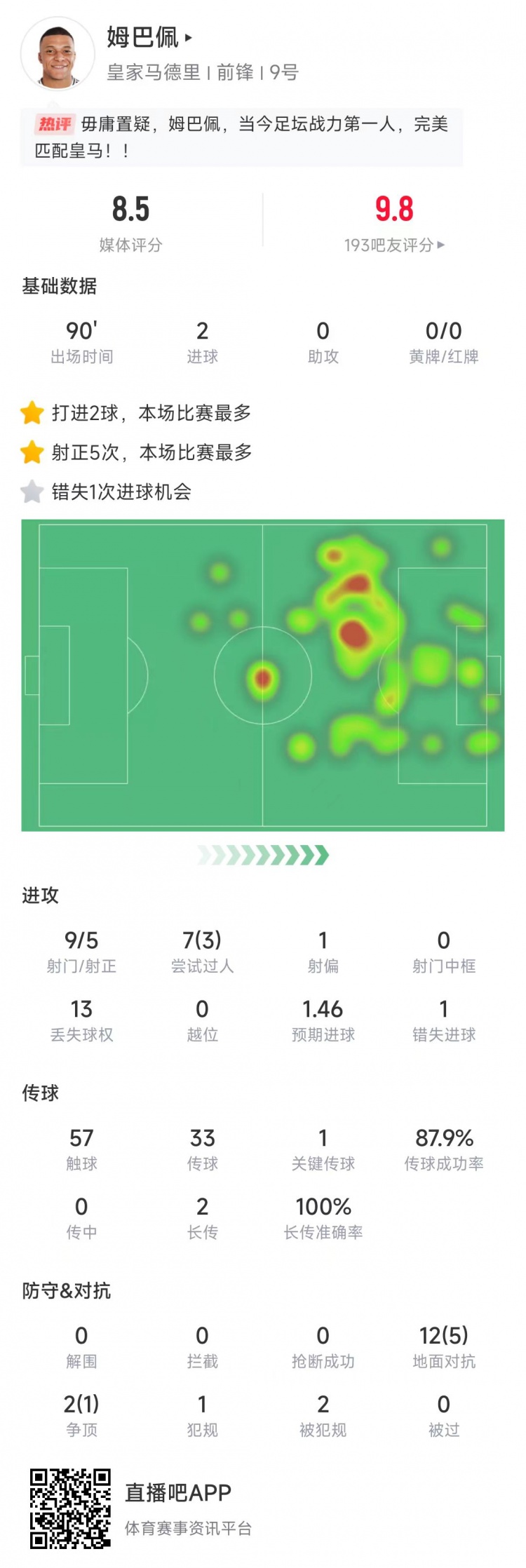 姆巴佩當選全場最佳球員:9次射門打進2球,7次過人3次成功