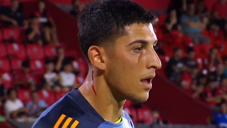 博卡門將被對方球迷丟下的玻璃劃傷脖子后流血,但他仍照常熱身