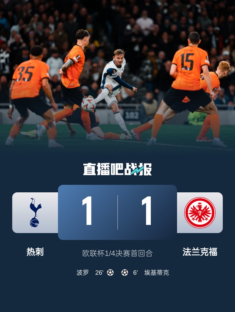 埃基蒂克首開紀錄,波羅扳平比分,最終熱刺首回合1-1戰平法蘭克福。