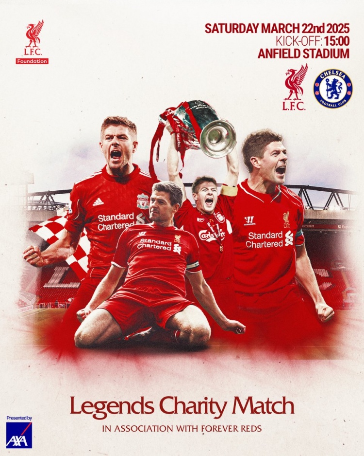 本場比賽將于3月22日周六于安菲爾德進行,比賽所得的所有收入將捐給利物浦足球俱樂部基金會,并支持包括Forever Reds、切爾西俱樂部基金會和切爾西球員信托基金在內的受益人。