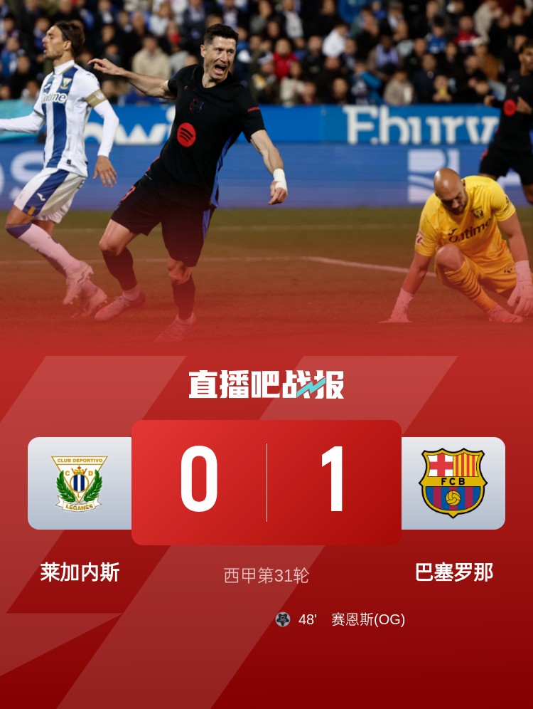 西甲第31輪,巴薩客場(chǎng)1-0戰(zhàn)勝萊加內(nèi)斯,拉菲尼亞造烏龍。