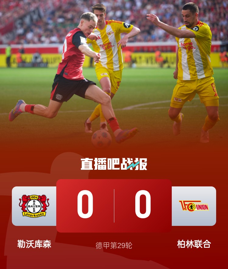 德甲第29輪,勒沃庫(kù)森0-0悶平柏林聯(lián)合。