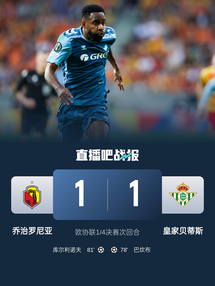 巴坎布破門,貝蒂斯1-1戰(zhàn)平喬治羅尼亞,兩回合總比分3-1淘汰對(duì)手!半決賽將迎戰(zhàn)佛羅倫薩。