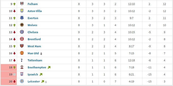 低迷!近9輪車子僅9分&多賽1場效率排第13,曼聯熱刺保級邊緣掙扎?