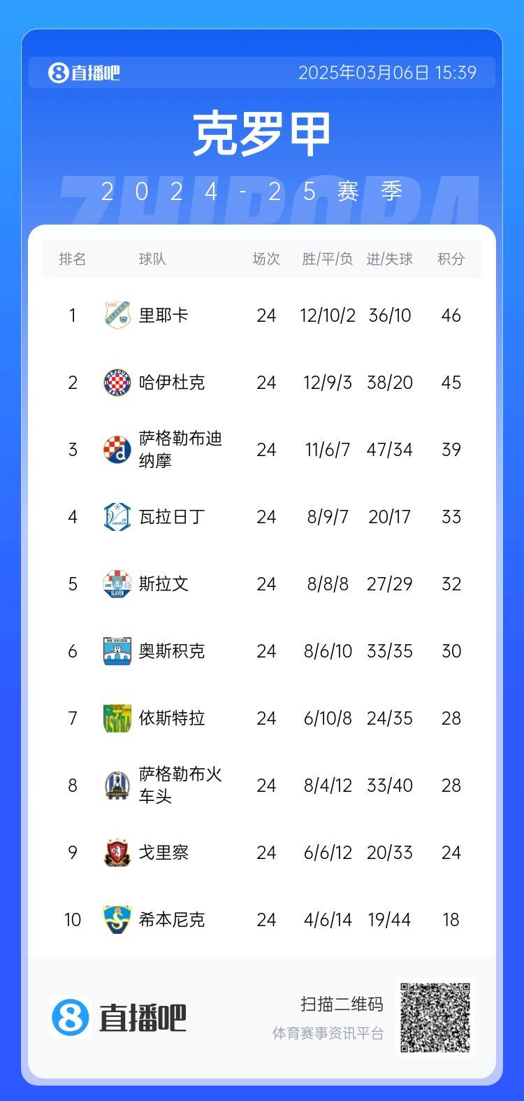 克羅地亞甲,法比奧·卡納瓦羅執教的薩格勒布迪納摩,主場2-2戰平加圖索執教的斯普利特哈伊杜克,兩隊繼續分列第三和第二。1分對于兩隊來說都不滿意,好在榜首的里耶卡也戰平,否則斯普利特海杜克和里耶卡的分差將被拉大。