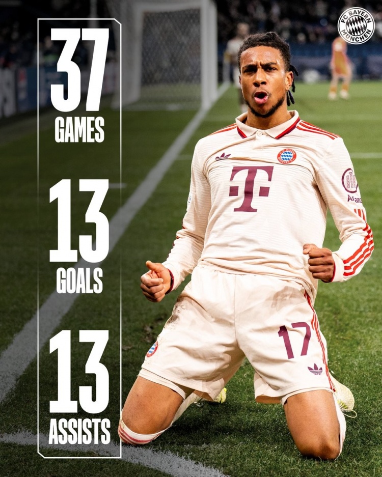 預(yù)訂拜仁賽季最佳引援?23歲奧利塞各項(xiàng)賽事37場(chǎng)13球13助攻?