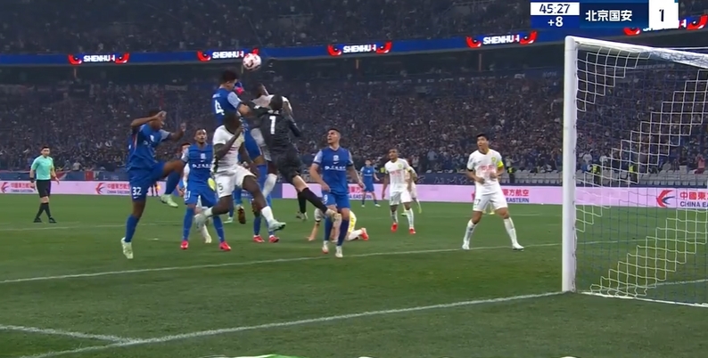 艾迪禁區(qū)內(nèi)亮鞋底鏟到張玉寧小腿,裁判麥麥提江沒(méi)有表示