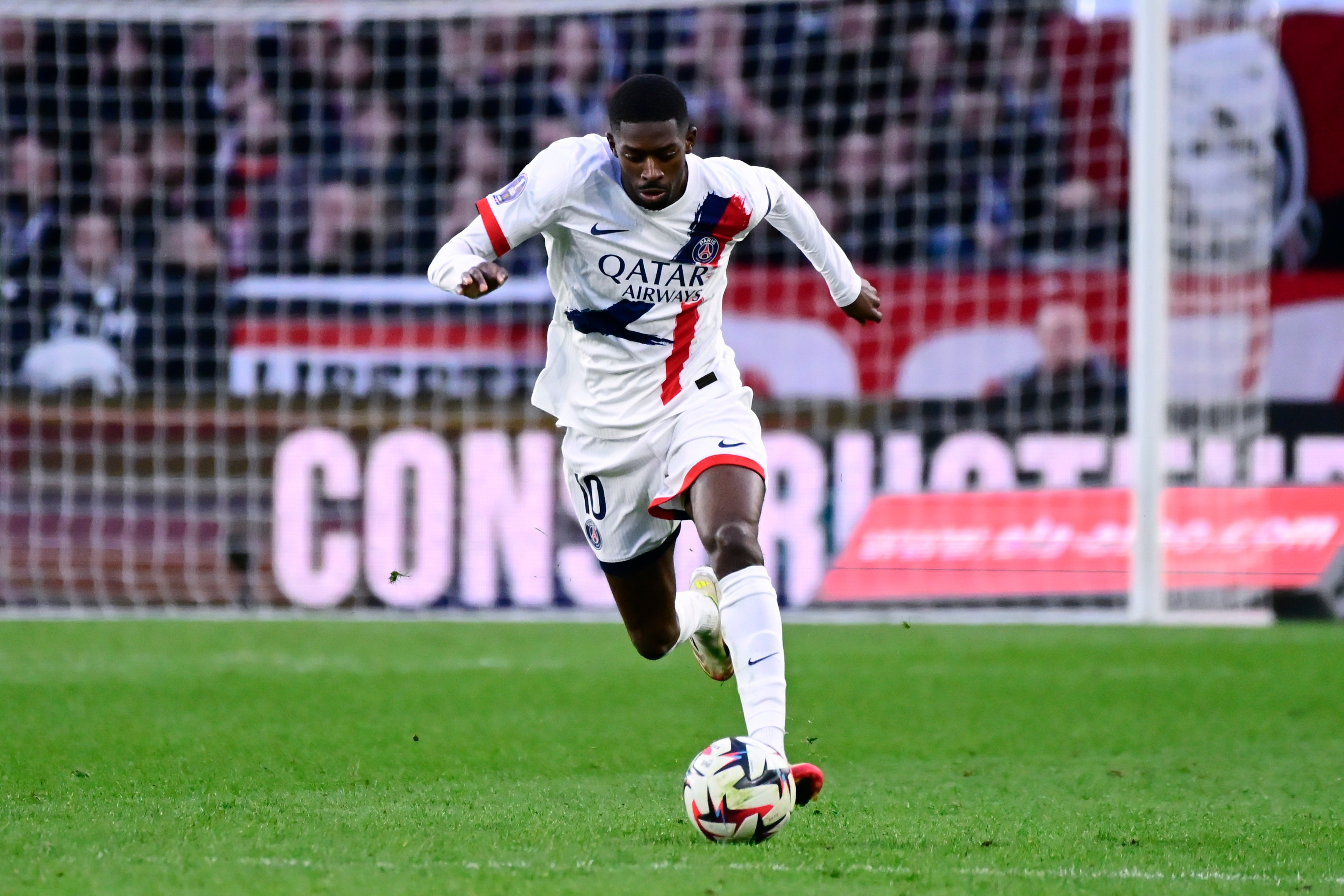 03月09日訊 法甲第25輪,巴黎4-1雷恩,登貝萊在本場比賽梅開二度。