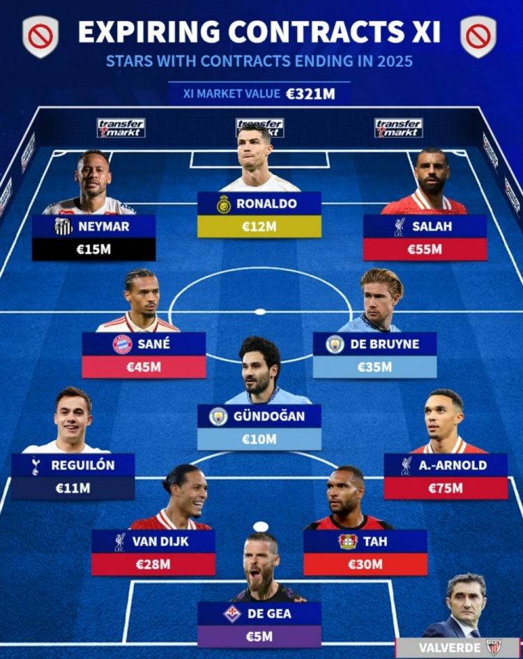 德轉(zhuǎn)列今年合同到期球星陣:C羅、薩拉赫、內(nèi)馬爾、范迪克在列?