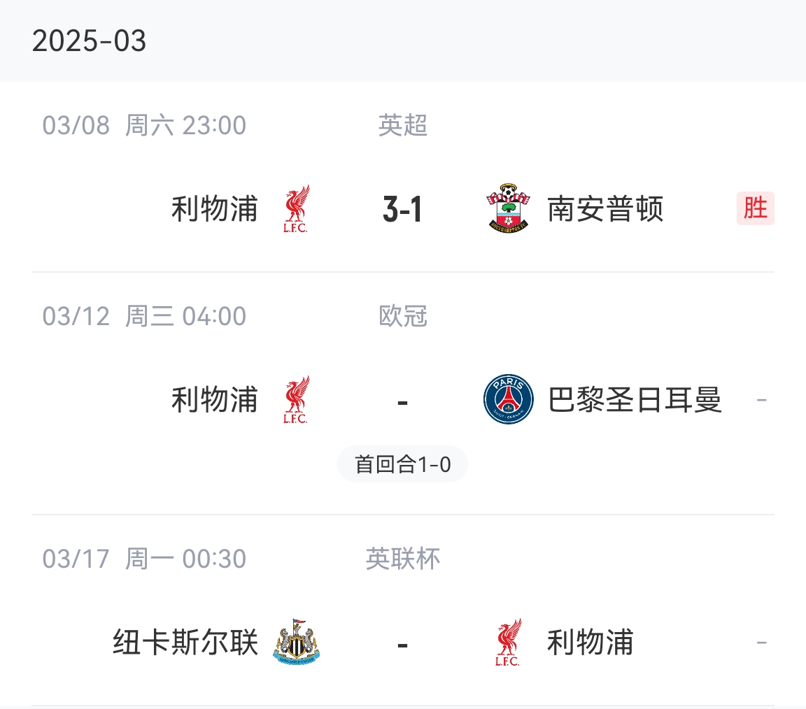 最終球隊3比1逆轉南安普頓,接下來球隊將在歐冠主場迎戰巴黎(首回合客場1-0),下周一凌晨,球隊將迎來與紐卡的英聯杯決賽,斯洛特將沖擊執教球隊的首座獎杯。