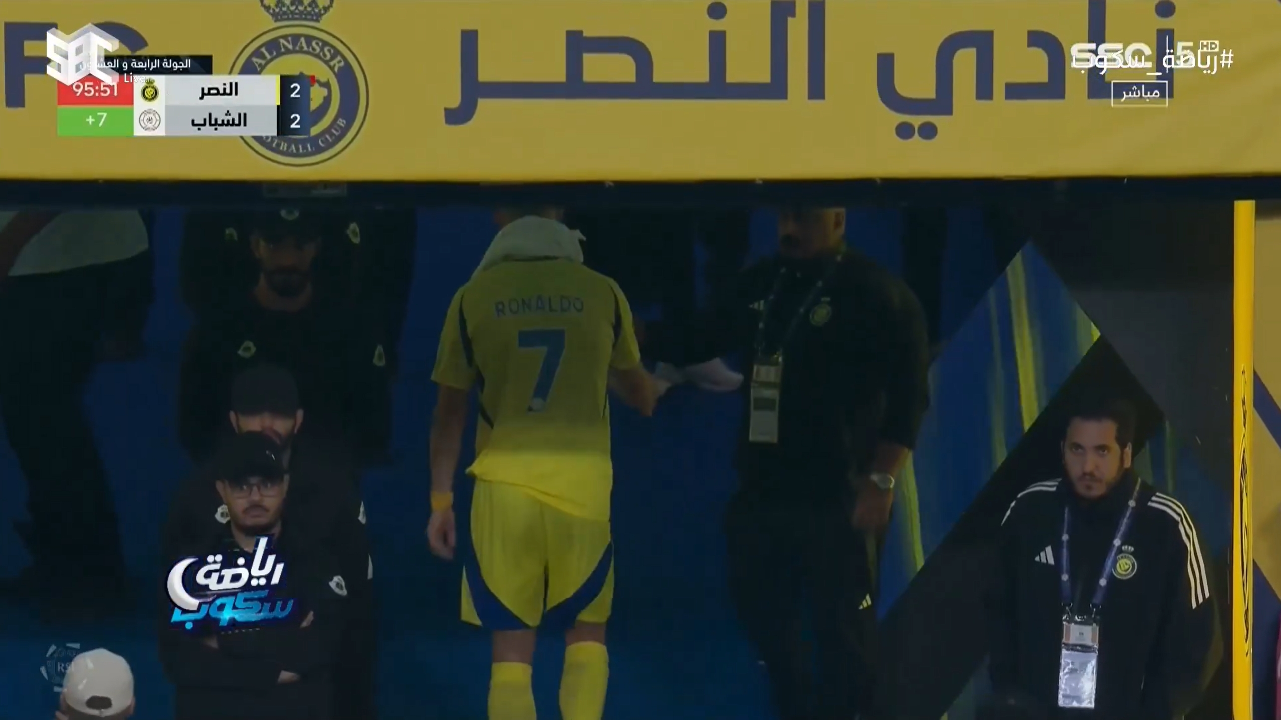 第24輪沙特聯,C羅在上半場補時第7分鐘破門并在第71分鐘被換下。但電視鏡頭捕捉到C羅在球隊被2-2扳平后的憤怒畫面,并且他選擇在終場哨聲吹響前提前走向球員通道。