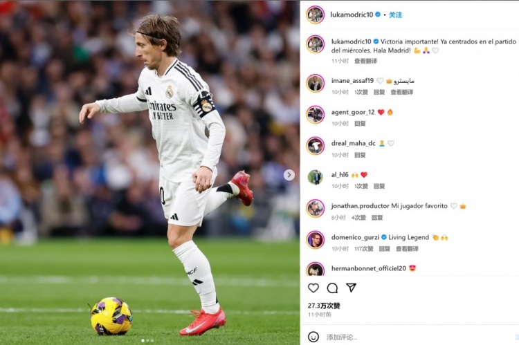 莫德里奇也曬出自己的比賽照,并配文:“重要的勝利!現(xiàn)在我們要專注于周三的比賽!馬德里前進(jìn)!”
