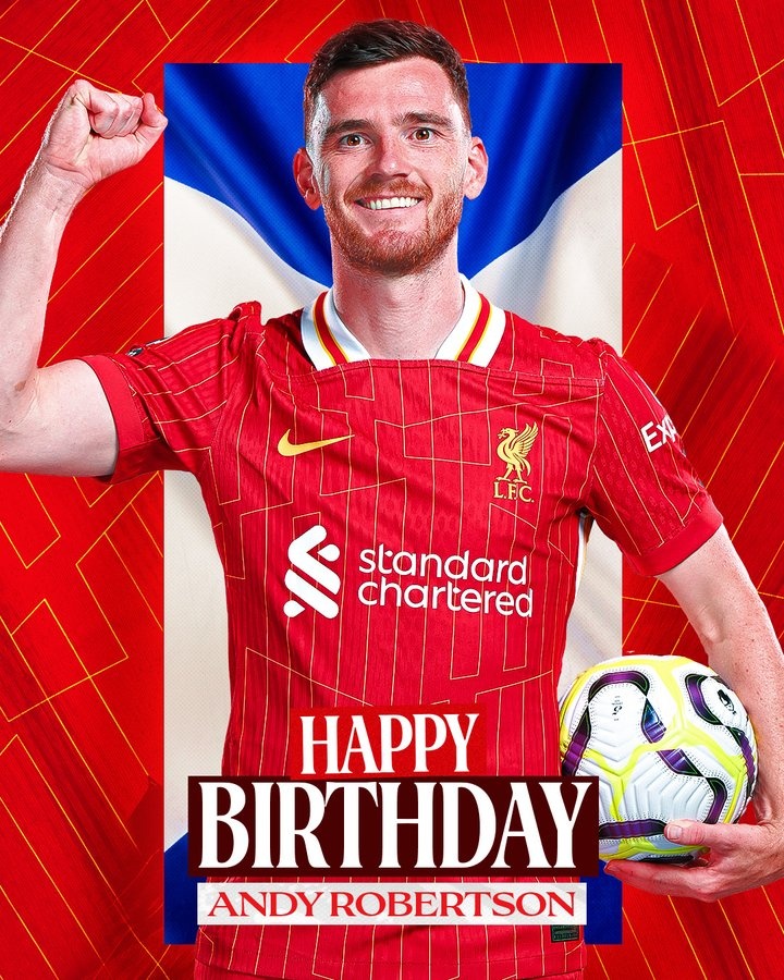 3月11日訊 今天是利物浦后衛羅伯遜的31歲生日,俱樂部官推曬海報送上祝福。