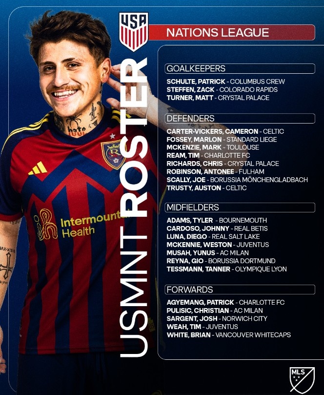 前鋒:阿杰芒(夏洛特FC)、普利西奇(米蘭)、薩金特(諾維奇)、小維阿(尤文)、布萊恩-懷特(溫哥華白帽)