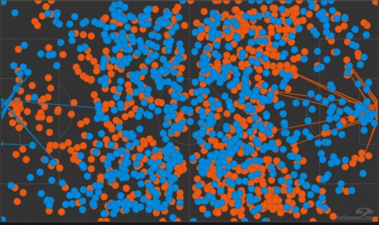 對比之下,馬競的足球哲學則更加偏向于在穩定防守后,完成的中路控制及推進保障,這通過他們傳遞的路線圖也能夠看出,中場的銜接對馬競來說可是太重要了,能不能順暢的過了中線,將會決定他們接下來向前推進的效率。對此,后腰的作用格外重要。
