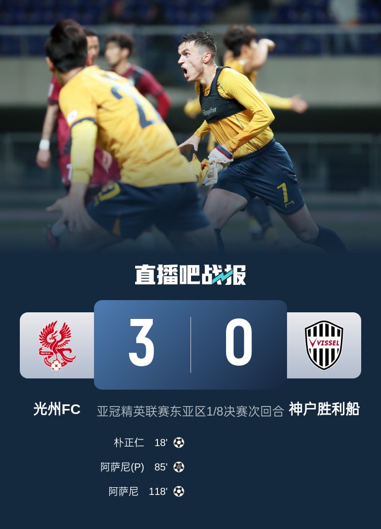 3月13日訊 亞冠精英聯(lián)賽1/8決賽次回合,光州FC在首回合客場(chǎng)兩球落敗的情況下,主場(chǎng)完成逆轉(zhuǎn),以3-0的比分擊敗神戶勝利船,晉級(jí)下一階段。