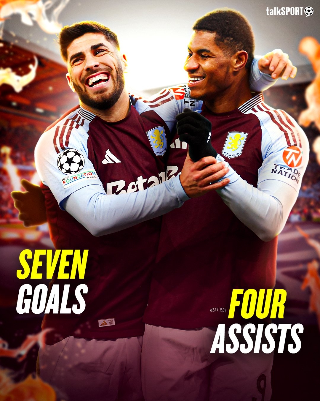 而拉什福德和阿森西奧也在新球隊交出了較好的答卷,在埃梅里手下,兩人在過去的9場比賽中都有不錯的數據,拉什福德出戰9場貢獻4助攻,阿森西奧則是8場7球。