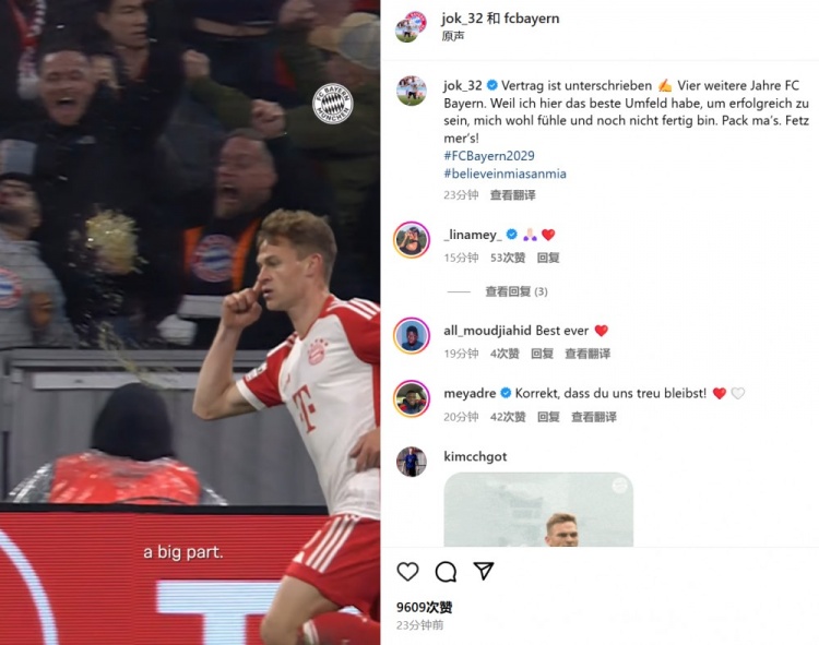 基米希轉發(fā)了拜仁的官宣視頻,并配文:“合同已簽署??我將在拜仁再戰(zhàn)4年。因為這里有我取得成功的最佳環(huán)境,我在這里過得很舒服,并且還有任務尚未完成。讓我們開始為之努力吧!”