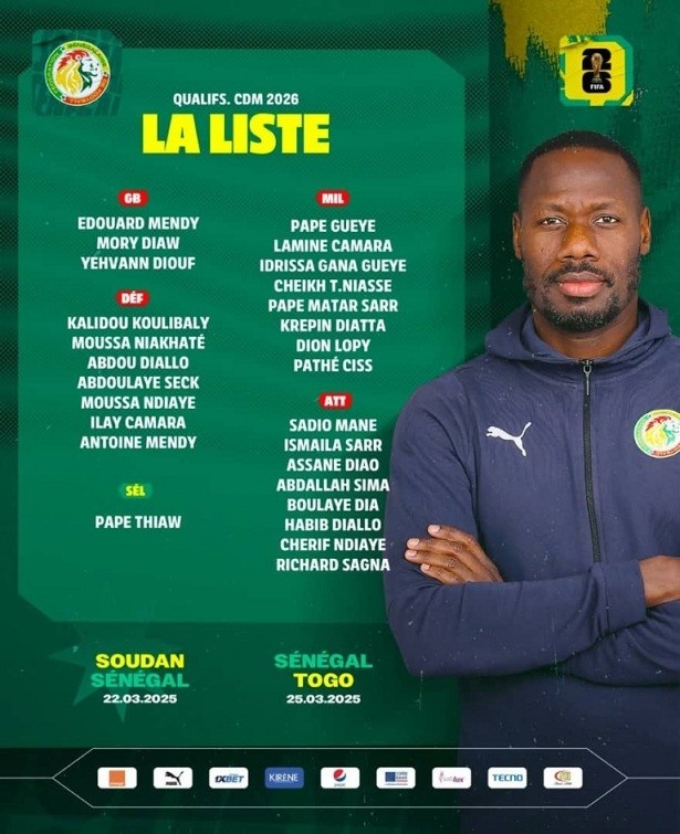 當(dāng)?shù)貢r(shí)間本周四,塞內(nèi)加爾國(guó)家隊(duì)公布了新一期大名單,備戰(zhàn)接下來(lái)對(duì)蘇丹(3月22日)和多哥(3月25日)的兩場(chǎng)世界杯非洲區(qū)預(yù)選賽。其中阿薩內(nèi)-迪奧首次入選塞內(nèi)加爾國(guó)家隊(duì)。