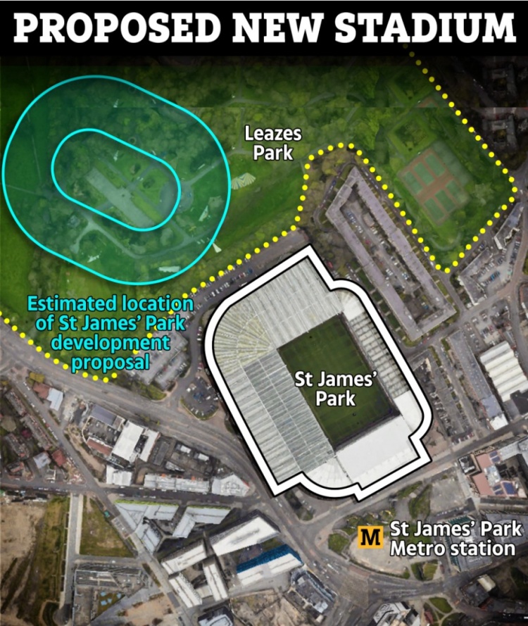 3月14日訊 據太陽報報道,紐卡斯爾將離開圣詹姆斯公園,建造一座能容納65000人的新體育場。